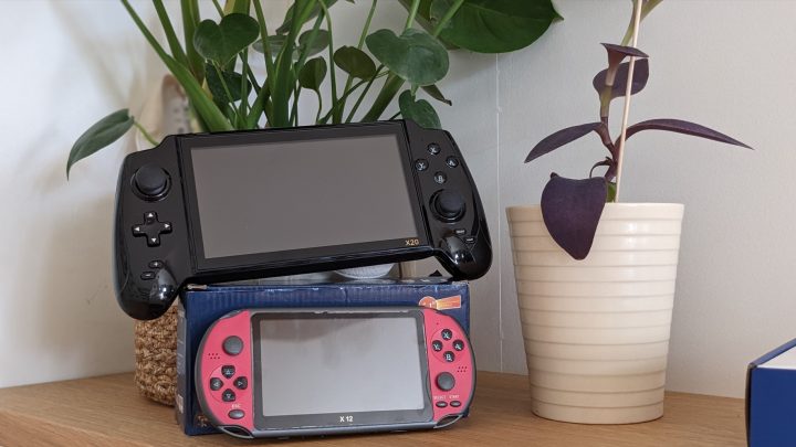 en jeux : une Console de jeux vidéo Portable rétro X20, avec 3000 jeux intégrés, écran HD de 7.0 pouces et une Console de jeux vidéo Portable rétro X12.
